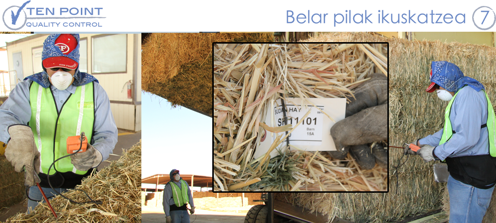 Kuhn Hay-ko prentsako kontramaisuak konprimitutako fardo guztiak begiratuko ditu eta, fardoren bat kutsatuta dagoela ikusten badu, bandera gorria ipiniko dio. Fardo horiek kendu egingo dira. Gure Ten Point Quality Control sistemaren arduradunak lagin bat jasoko du erreserba bakoitzetik, poltsa batean sartuko du et agure kameran gordeko du. Horrela, ziurtatzen dizugu belar ondua zuk eskatutako kalifikazioarekin eta kalitatearekin iritsiko zaizula.